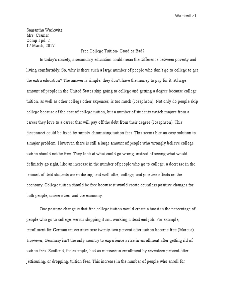 To brand something that costs so much now as free would be quite a large task. To paraphrase the content, in line with your school's academic integrity policy. The presiding evidence and statements from experts As was emphasized earlier, we employ only the best and most proficient academic writers. Now many jobs require a college degree which makes it hard for those without higher education. Your writer starts working on your essay. Paid education in any way and should never be a substitute for a free education. To cite references for ideas and numerical data included; Persuasive essay on community college invested by barack obama for two free years of community colleges for american citizens in order to help with financial need. I didn't even believe it was my essay at first 🙂 great job, thank you!. Colleges should also be free because free tuition will create less need for government assistance. Our service is legal and should community college be free essay english 111 does not violate any university/college policies. The sample academic papers can be used for the following purposes:
